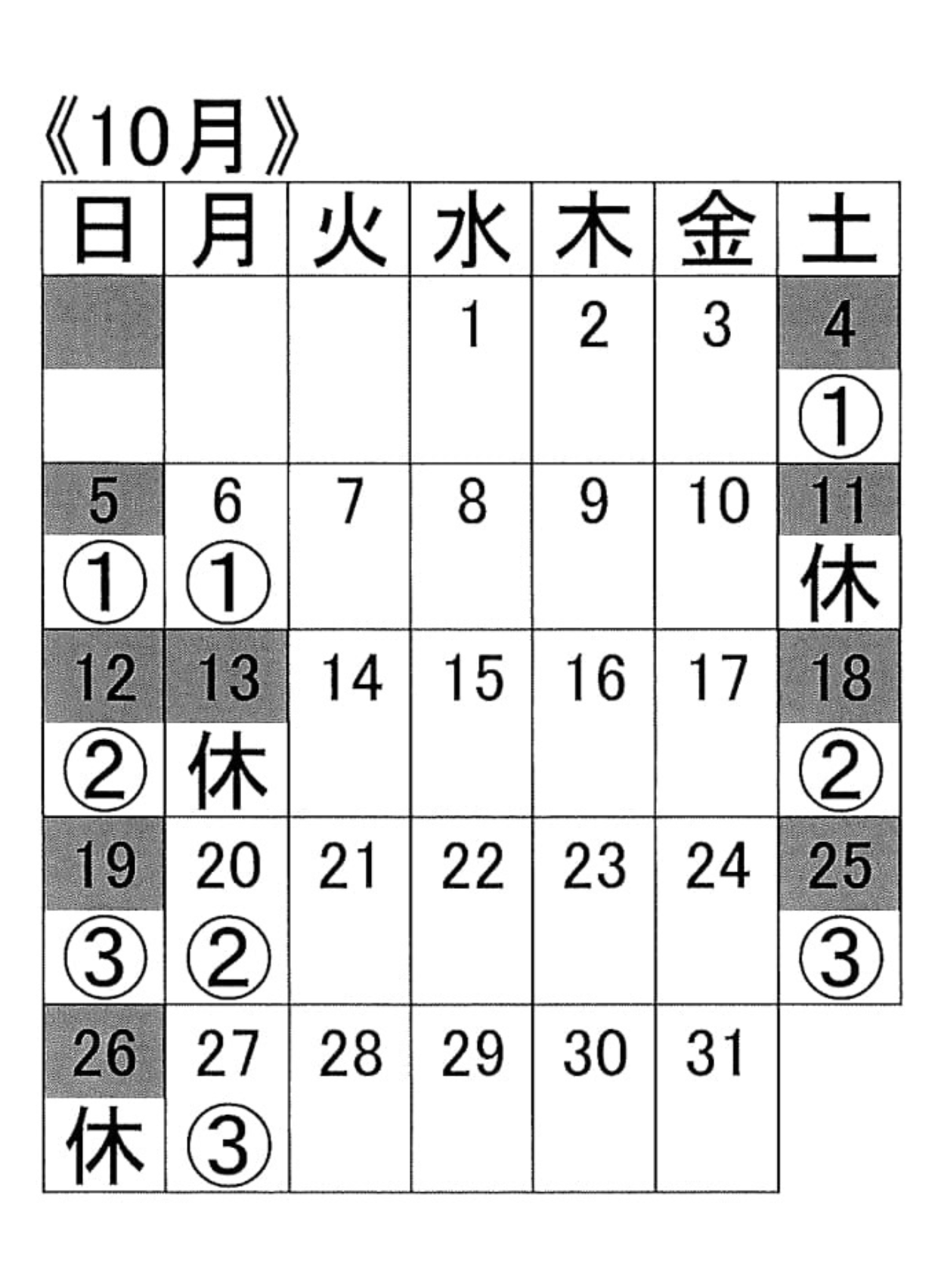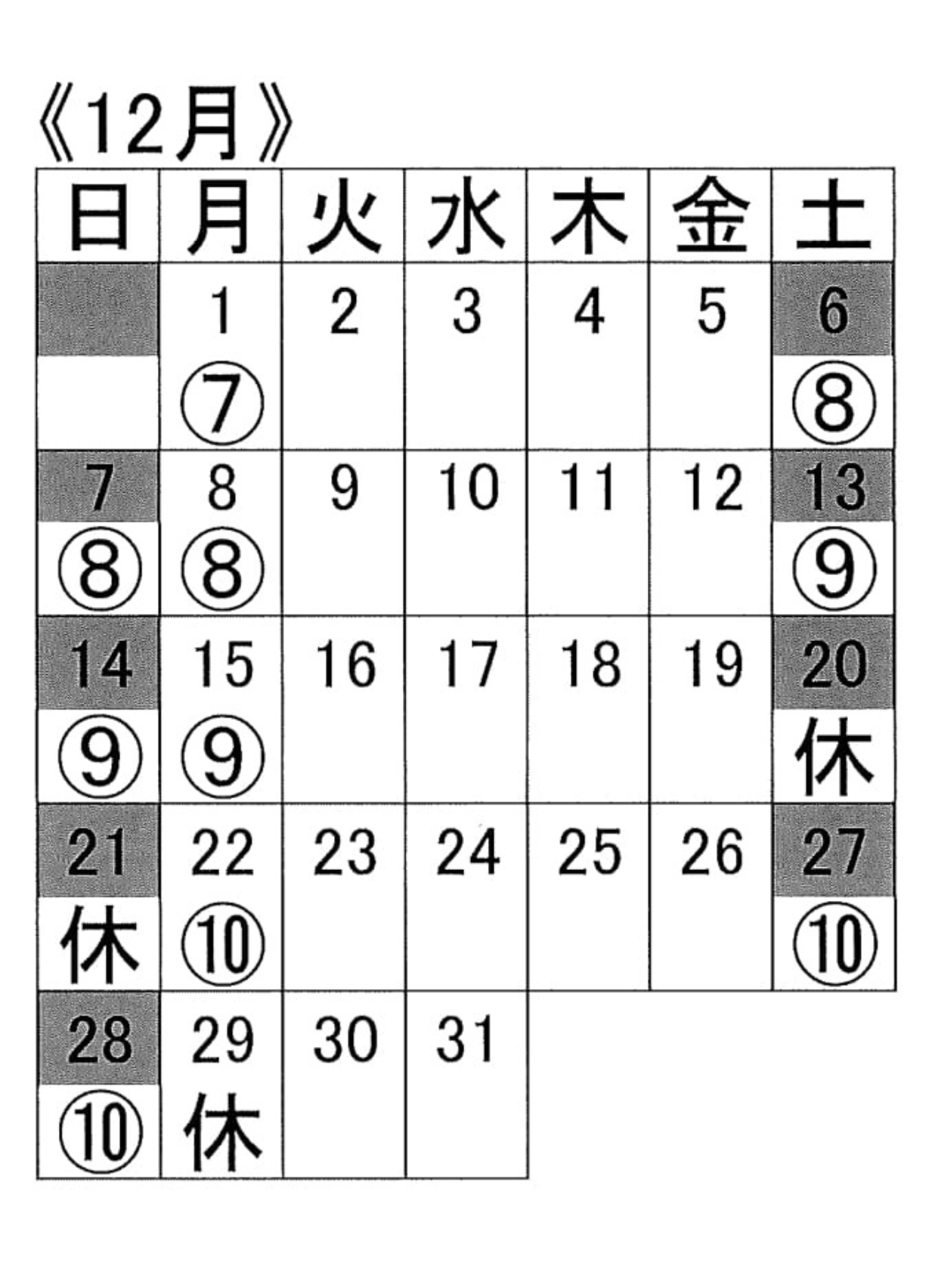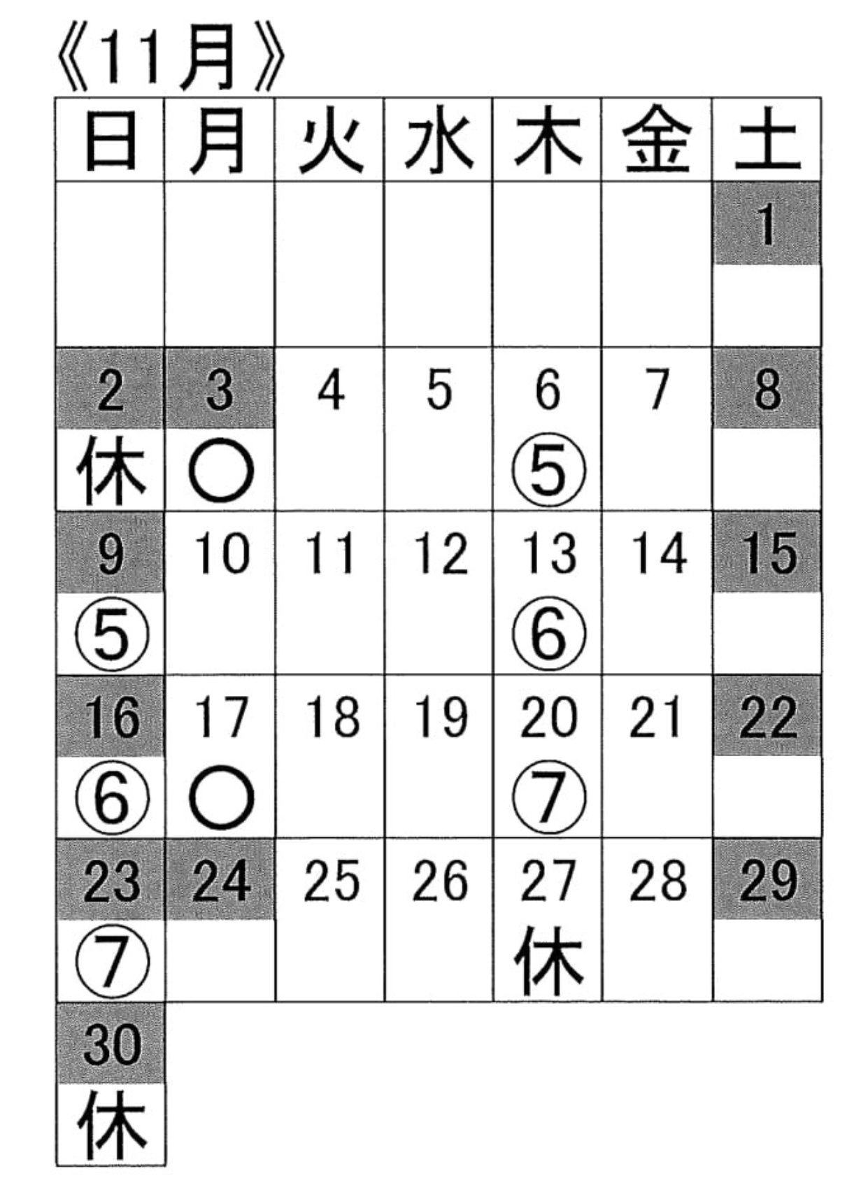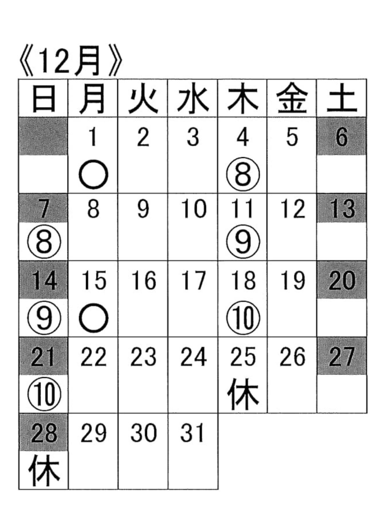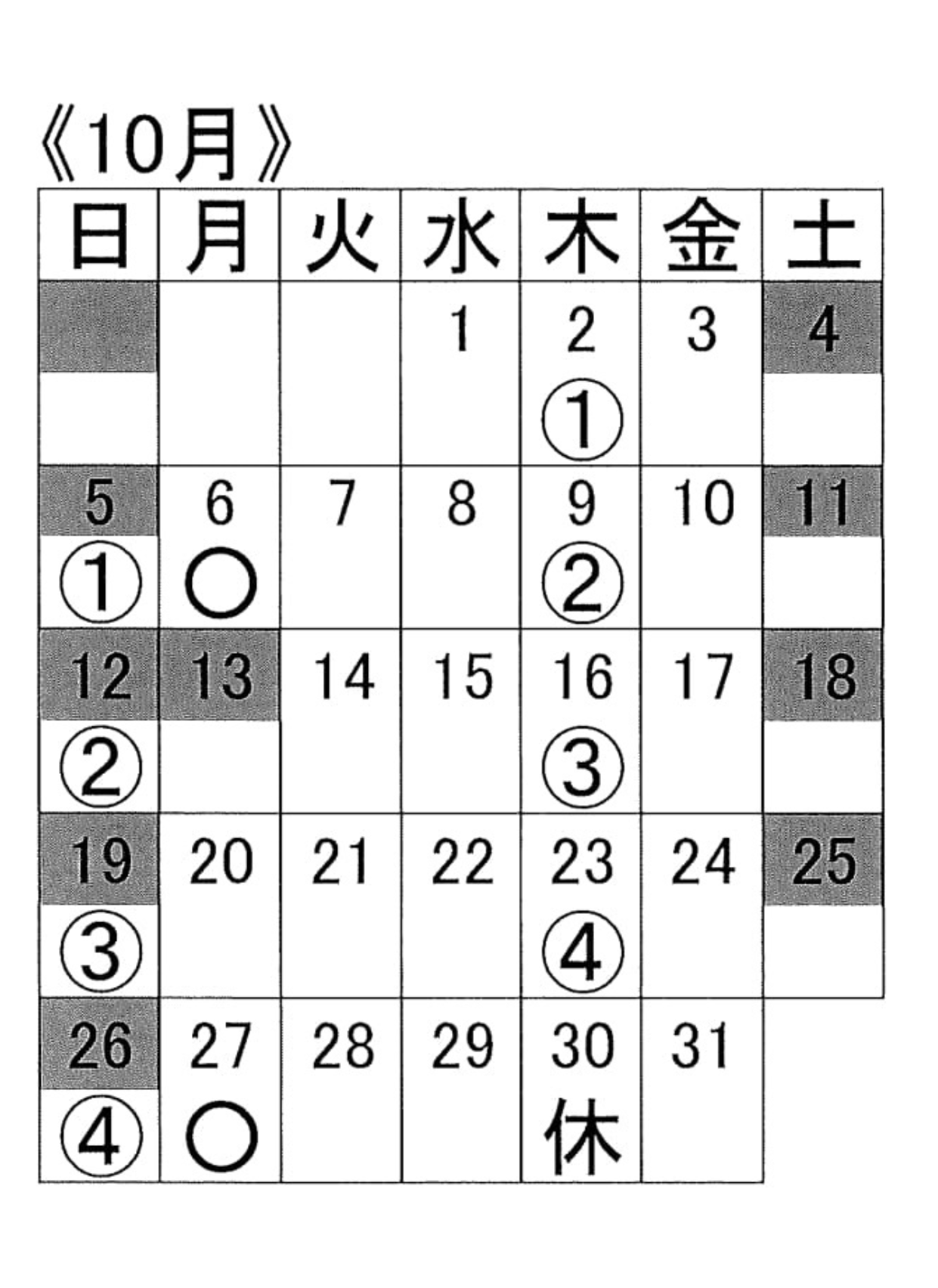 ※月曜日の〇は振替専用クラス開講日です。(担当:大和田)前日までに要予約。