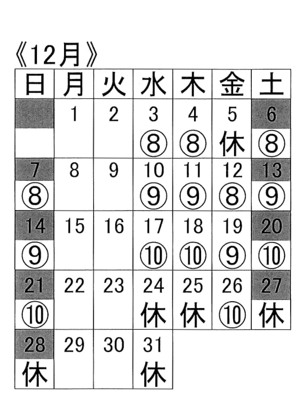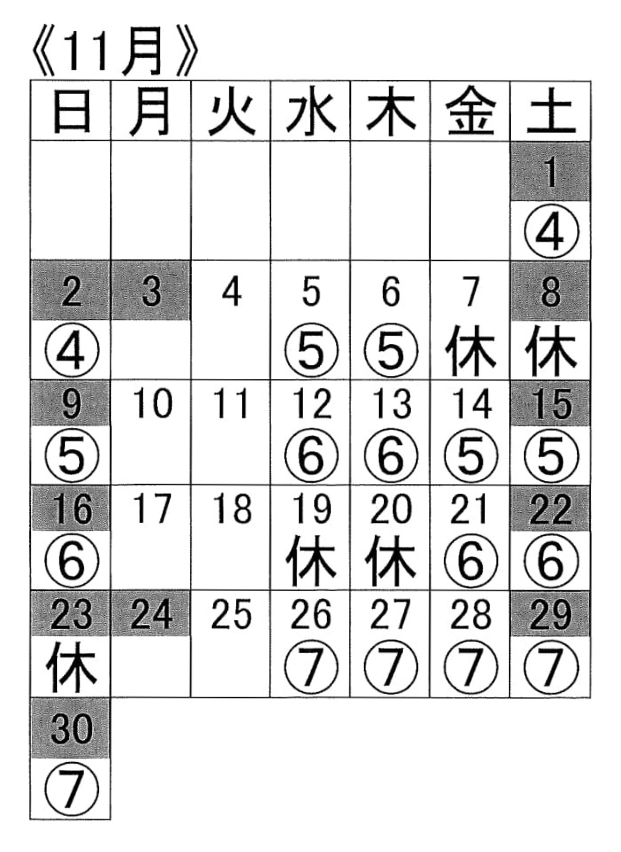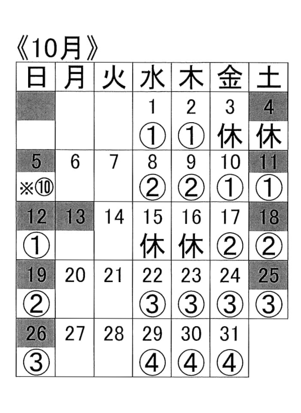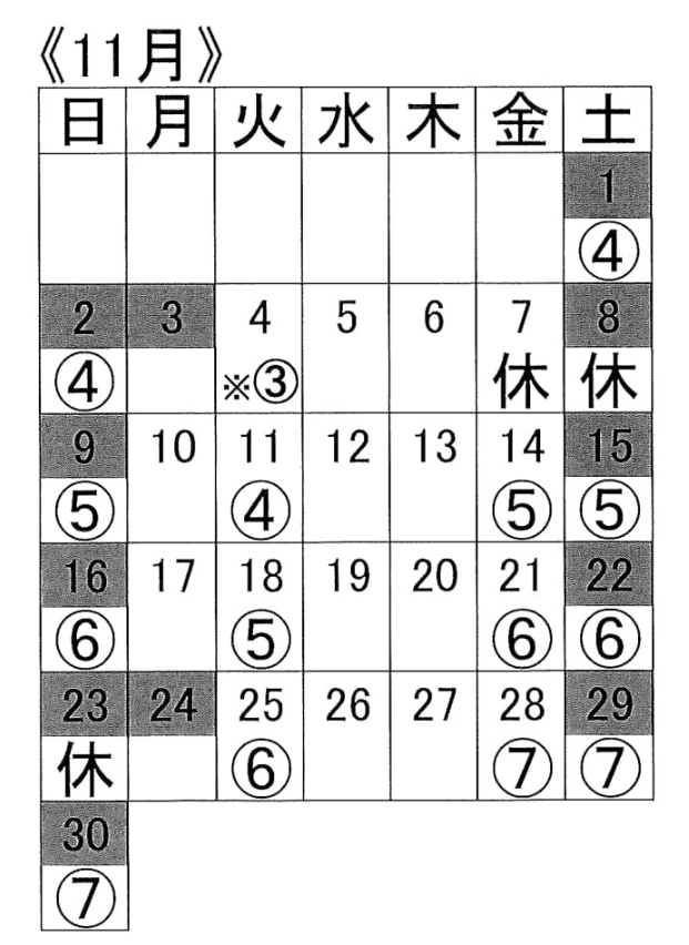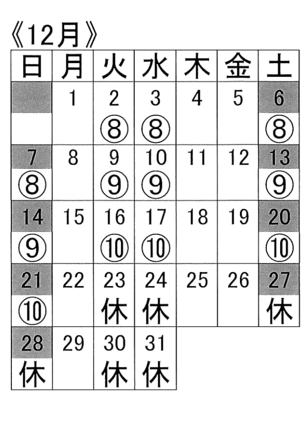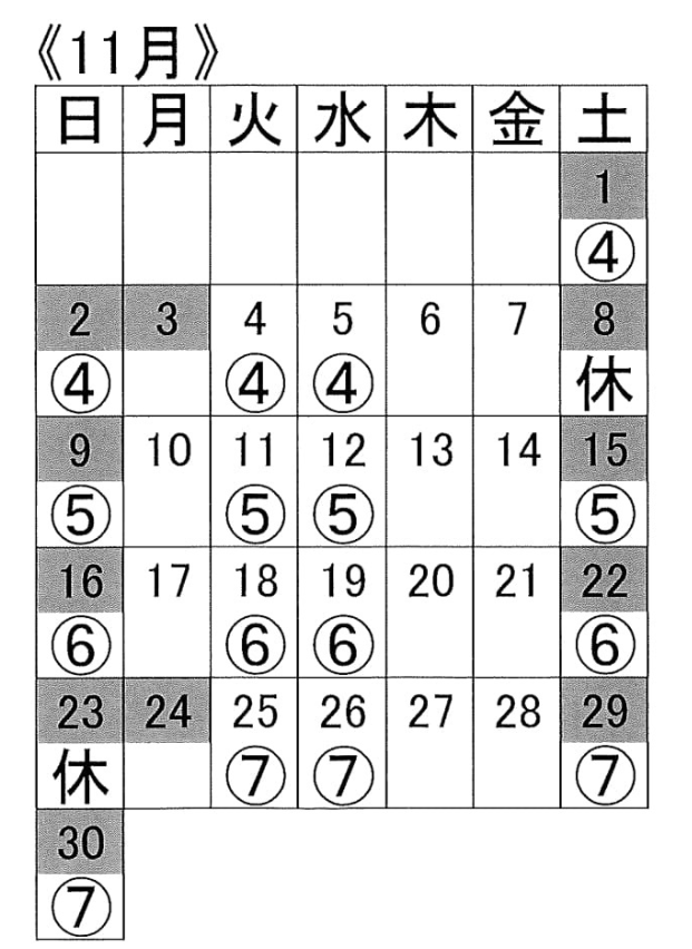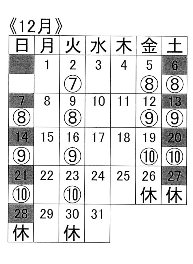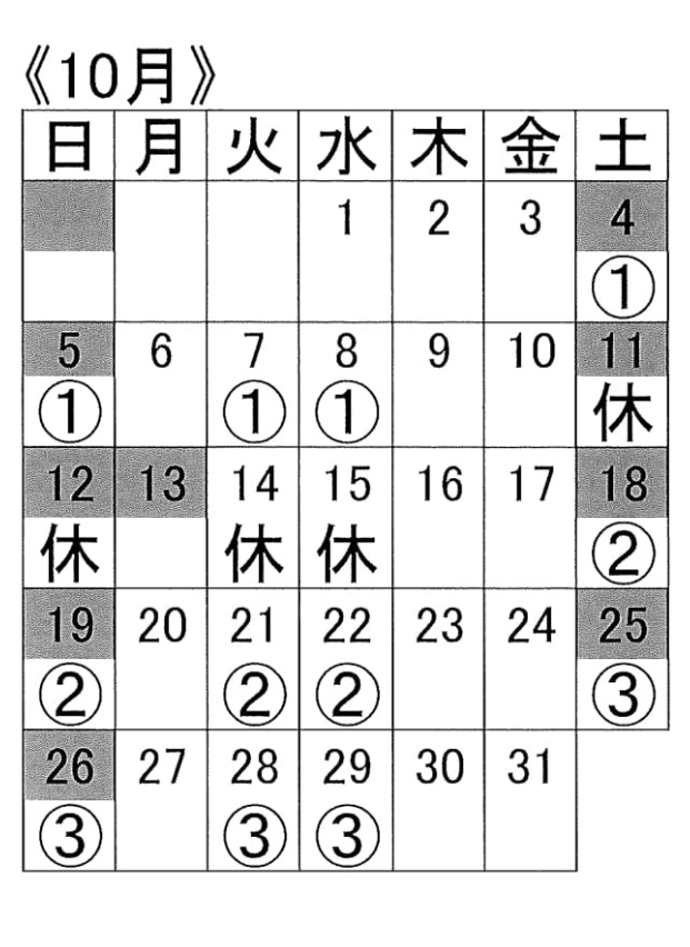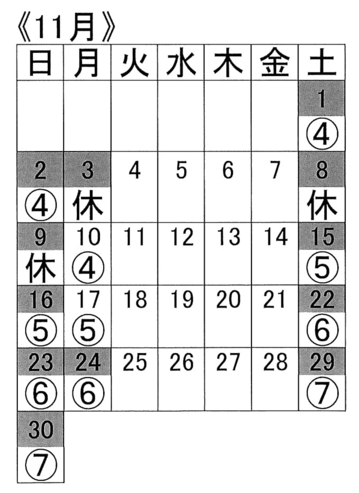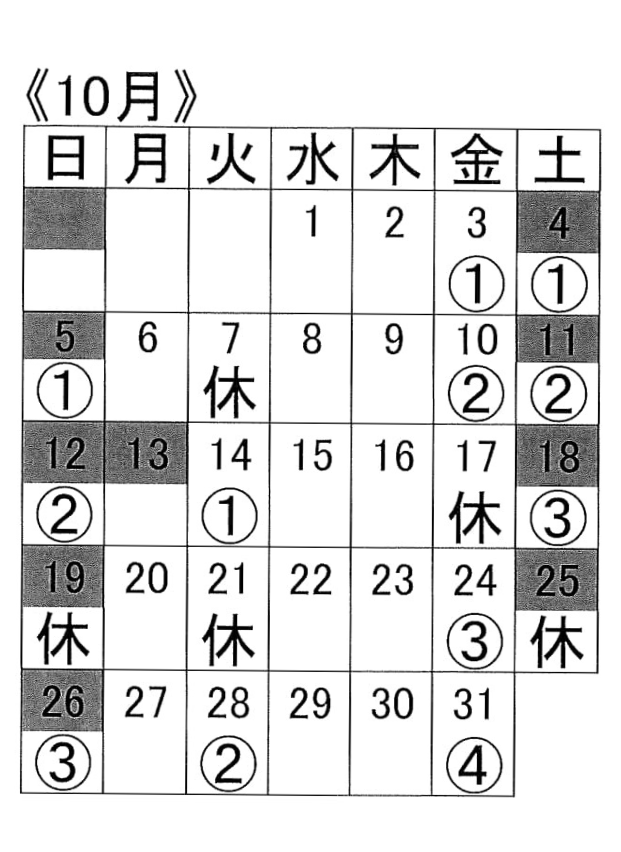 ※月曜日の〇は振替専用クラス開講日です。(担当:大和田)前日までに要予約。
